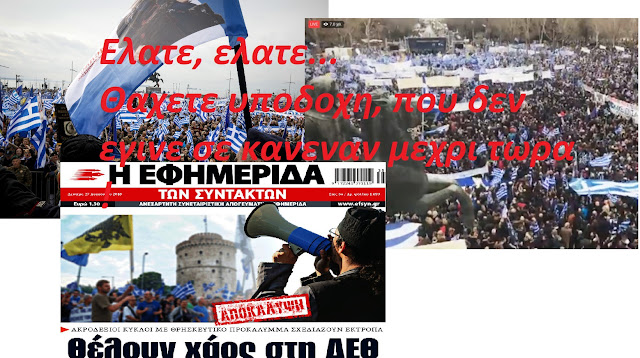Ο τρόμος του Μαξίμου και της υπό κατάρρευσης Κυβέρνησης Τσίπρα για την λαϊκή οργή που έχει προκαλέσει το Ξεπούλημα της Μακεδονίας από τους Τσίπρα- Κοτζιά- Καμμένοαποτυπώνεται ξεκάθαρα στο σημερινό «εμπρηστικό” (και άκρως προβοκατόρικο) πρωτοσέλιδο της «Εφημερίδας των Συντακτών».